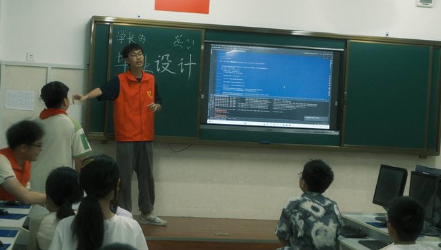为了激发孩子们的创新思维,志愿者还为孩子们开设了微机课。微机课上,志愿者们不仅给孩子们讲解了Word、PPT等软件的应用技巧,分享了自己设计的程序,还让孩子们了解了日常使用的应用是如何通过一行行代码实现的,引得阵阵惊呼。