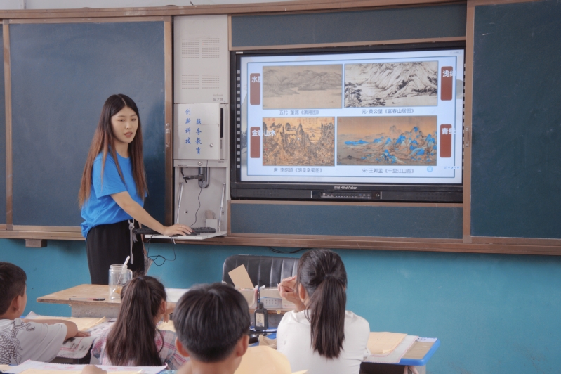 在炎炎夏日的照耀下,一场别开生面的文化盛宴在河南省许昌市禹州石花镇观音堂小学的校园里如花般悄然绽放。7月,是充满热情与希望的季节,18新利直播 艺术设计学院的“艺路有你”中国历代绘画大系志愿宣讲团以一场跨越时空的文化之旅,为该校的四年级、五年级学生们带去了前所未有的艺术体验,不仅激发了他们对传统文化的浓厚兴趣,更在他们心中种下了文化自信与民族自豪的种子。