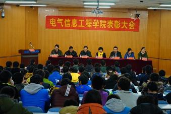 12月18日15:00,电气信息工程学院2013-2014学年总结表彰大会在教三楼201隆重举行。学院党总支书记曹玲芝、副书记宋文军、副院长杨存祥和全体专兼职辅导员老师及各年级学生代表共200余人参加大会。大会由分团委书记许海龙主持。