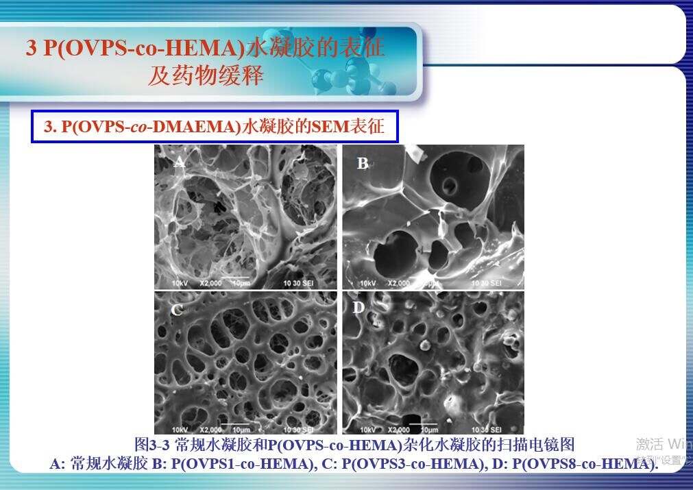 目前传统的水凝胶多以亚甲基丙烯酰胺(MBA)作为交联剂,此类水凝胶存在强度低、脆性大、对外界刺激响应速率慢、光学透明性差以及生物相容性差等缺点,极大地限制了其在生物医用材料领域的应用。我们以生物相容性好的无毒无味的OVPS,取代传统的MBA小分子交联剂,以期获得力学性能增强的有机无机杂化水凝胶。