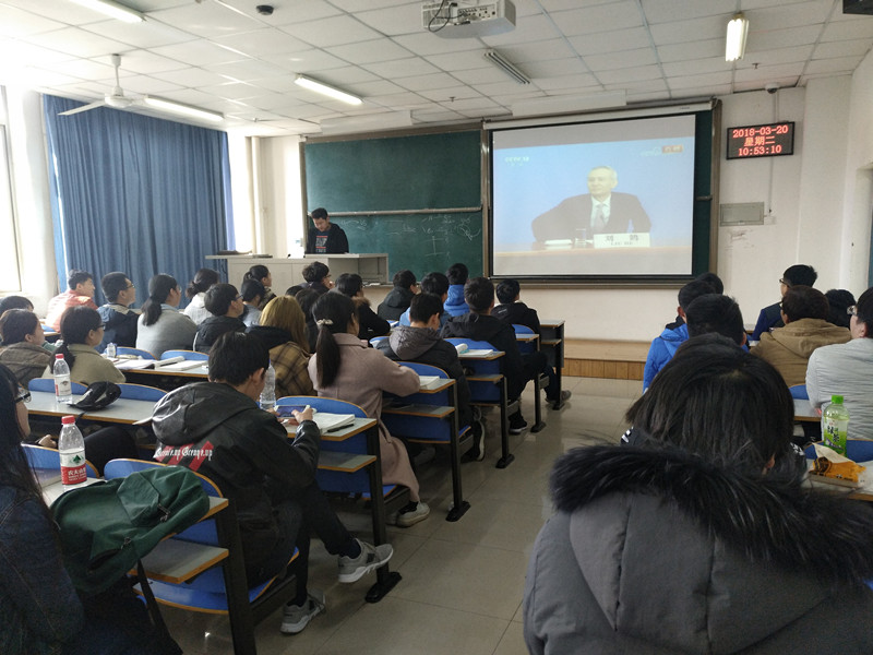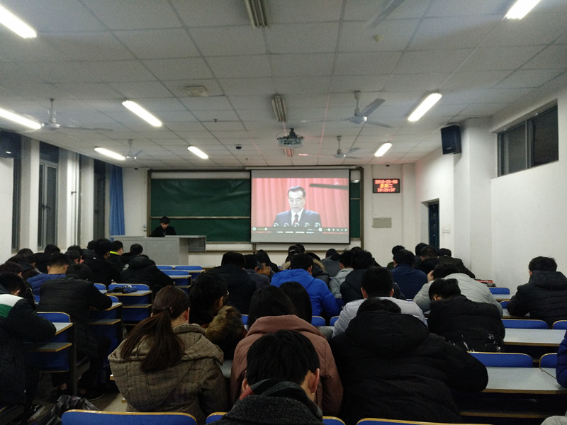 学院通过主题班会、主题团日活动和座谈会等形式,组织各班级、学生党员、入党积极分子观看了“两会”开闭幕式、习近平总书记进行宪法宣誓视频、李克强总理答记者问等视频,认真学习了习近平总书记在“两会”期间的重要讲话精神、《国务院政府工作报告》、《中华人民共和国宪法修正案》和《国务院机构改革方案》等内容。通过学习,同学们了解到国家在医疗、教育、税收、养老、环保、民生等方面的改革内容,对祖国和社会未来的发展充满信心、充满期待。活动中同学们围绕两会热点话题展开了热烈讨论,纷纷结合自身情况发表自己的看法,表示在今后的学习生活中将继续积极关注“两会”热点,了解国内外形势,认真思考,努力学习,勇担社会责任。