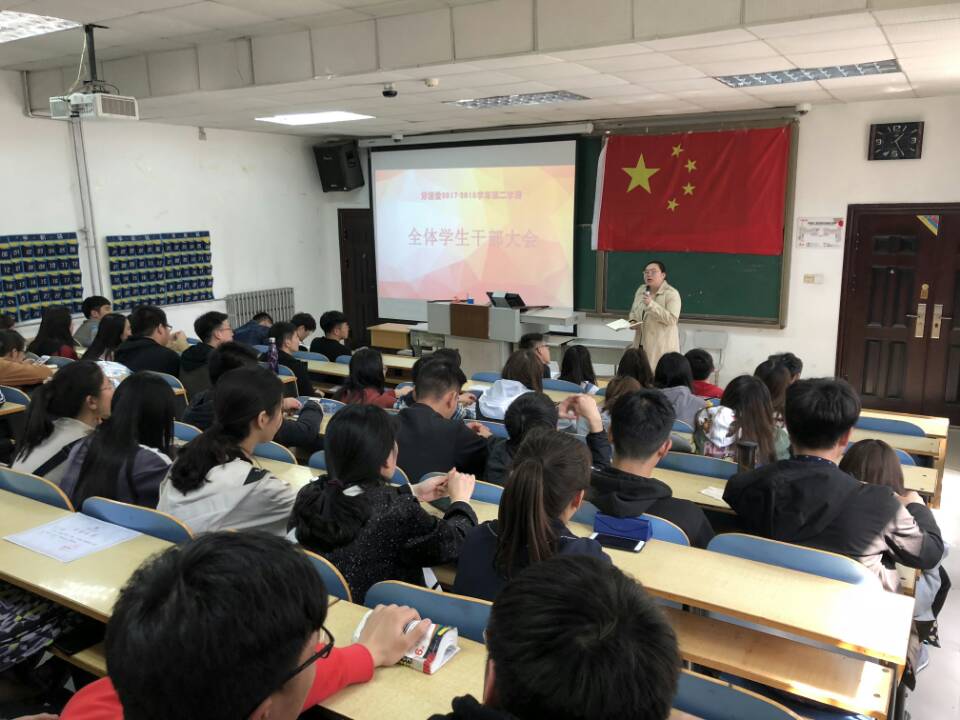 国际教育学院分团委于3月26日中午12点40分在教二楼129召开了“分团委2017-2018学年第二学期全体学生干部大会”。参加此次会议的有国际教育学院辅导员栗想老师以及分团委全体学生干部,会议由分团委常务副书记刘川松主持。