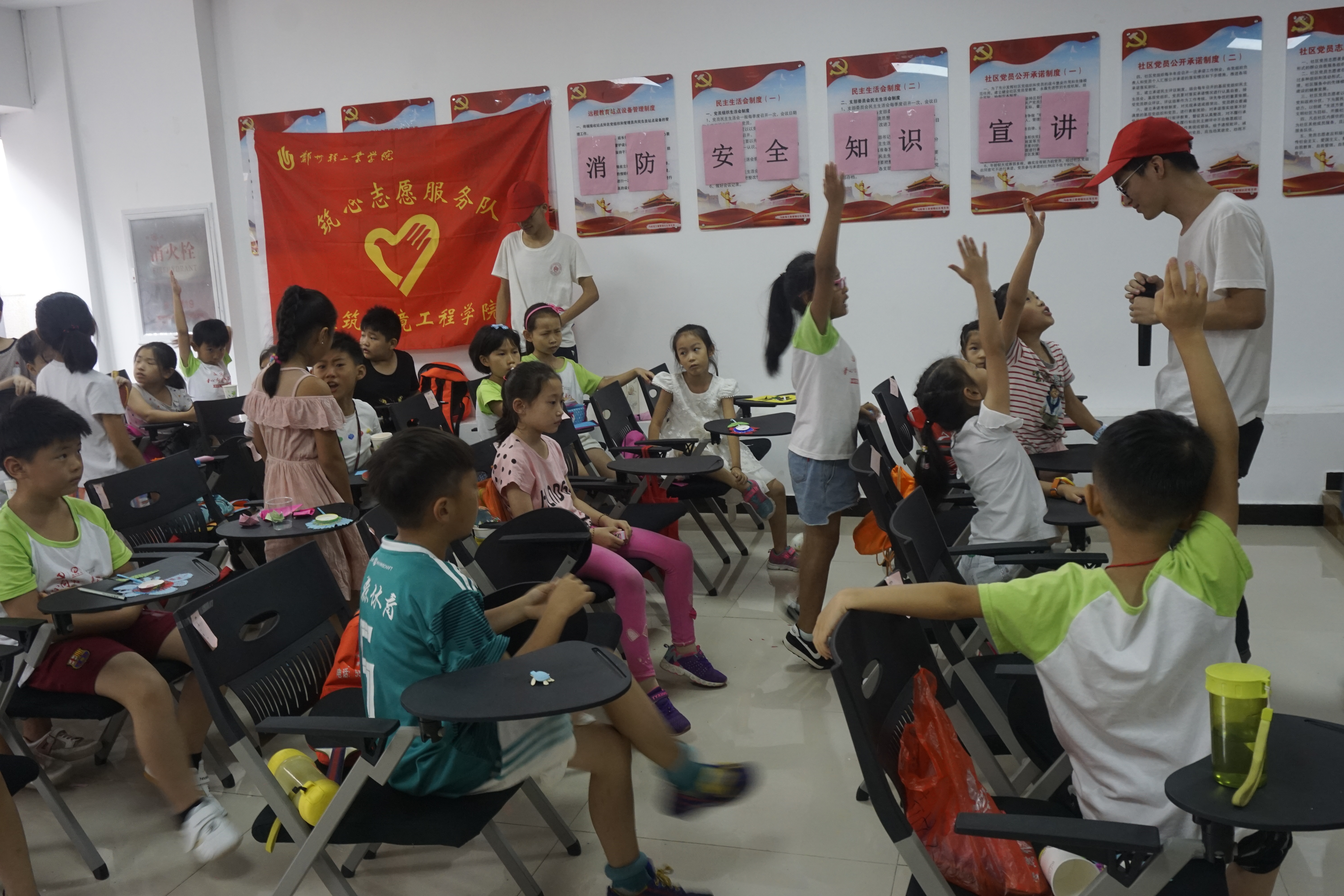 筑心消防安全宣传志愿服务队的队员在盛世社区与孩子们进行游戏互动 |
