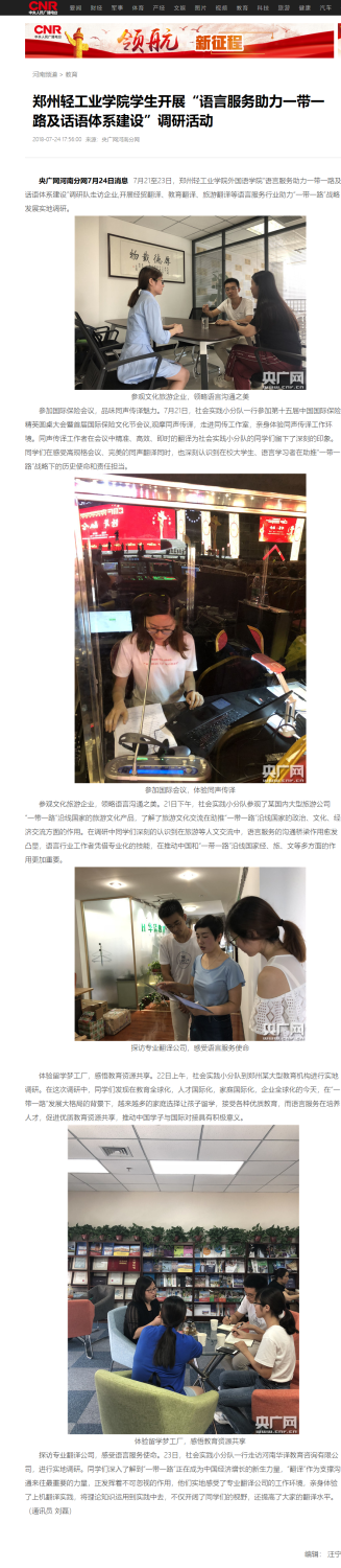 中国人民广播电台:郑州轻工业学院学生开展“语言服务助力一带一路及话语体系建设”调研活动 |