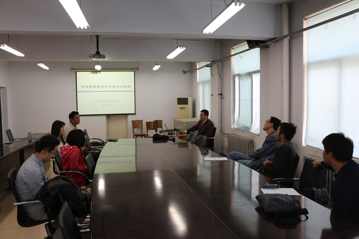 2014年4月24日上午10:00,李红涛老师在体育系三楼会议室作了“体育赛事赞助研究现状与发展趋势”学术报告,体育系各学科团队成员参加了此次报告。