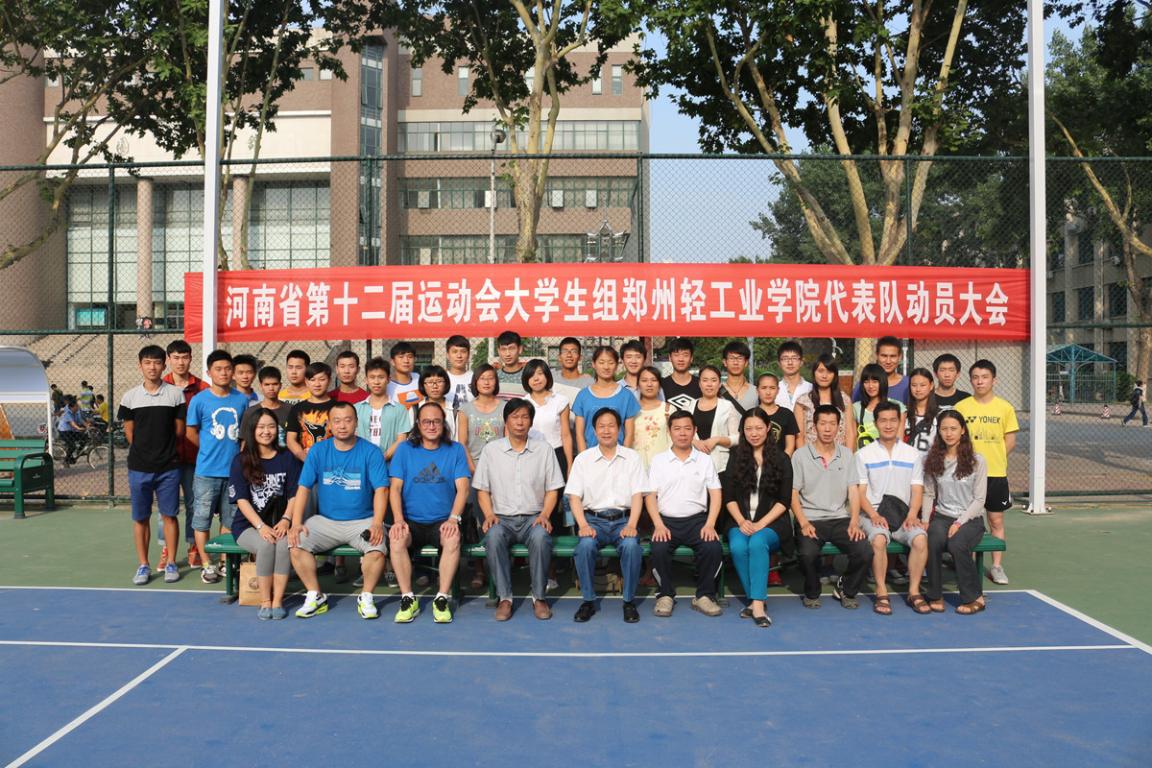 2014年6月3日,我校成功召开参加河南省第十二届运动会大学生组动员大会。会上,校体委主任、副校长陈江风教授对我校即将参加2014年河南省第十二届运动会大学生组比赛的田径、武术、羽毛球、健美操代表队作了赛前动员讲话,对各支代表队寄予厚望,同时要求各代表队在赛场上以良好的精神面貌展示轻院大学生风采,力争以优异的运动成绩为我校增添荣誉。