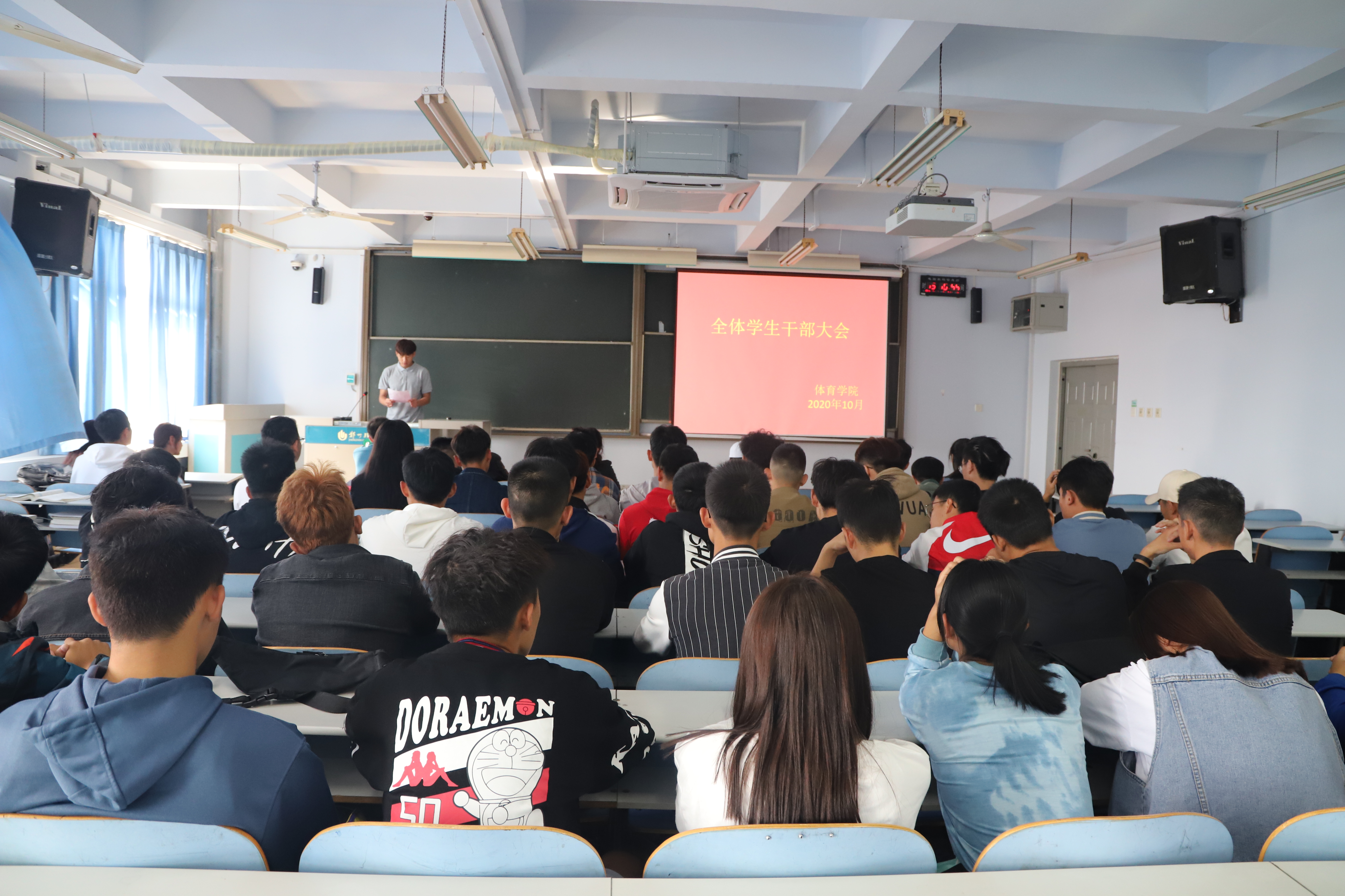10月7日下午,体育学院在教三楼801室召开全体学生干部大会。体育学院党总支副书记谭俊超、团委书记石庆福、辅导员陈洁、全体学生干部及2020级新生参加了此次会议。