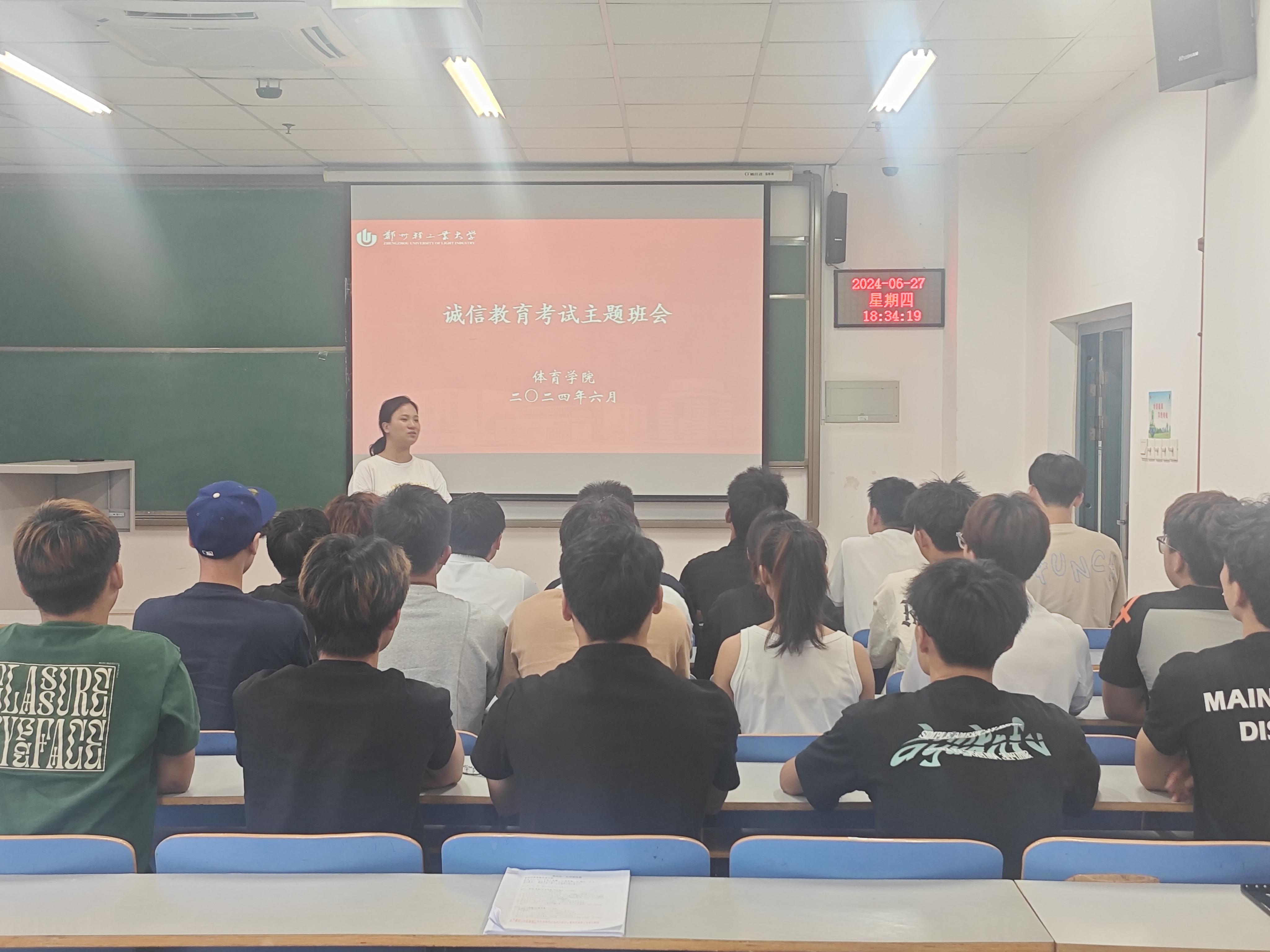 为严肃考风考纪,加强学风建设,增强学生对诚信考试重要性的理解,6月底,体育学院各班级召开诚信考试暨学风建设主题班会。会议由辅导员主持,各班主任及全体学生参加会议。