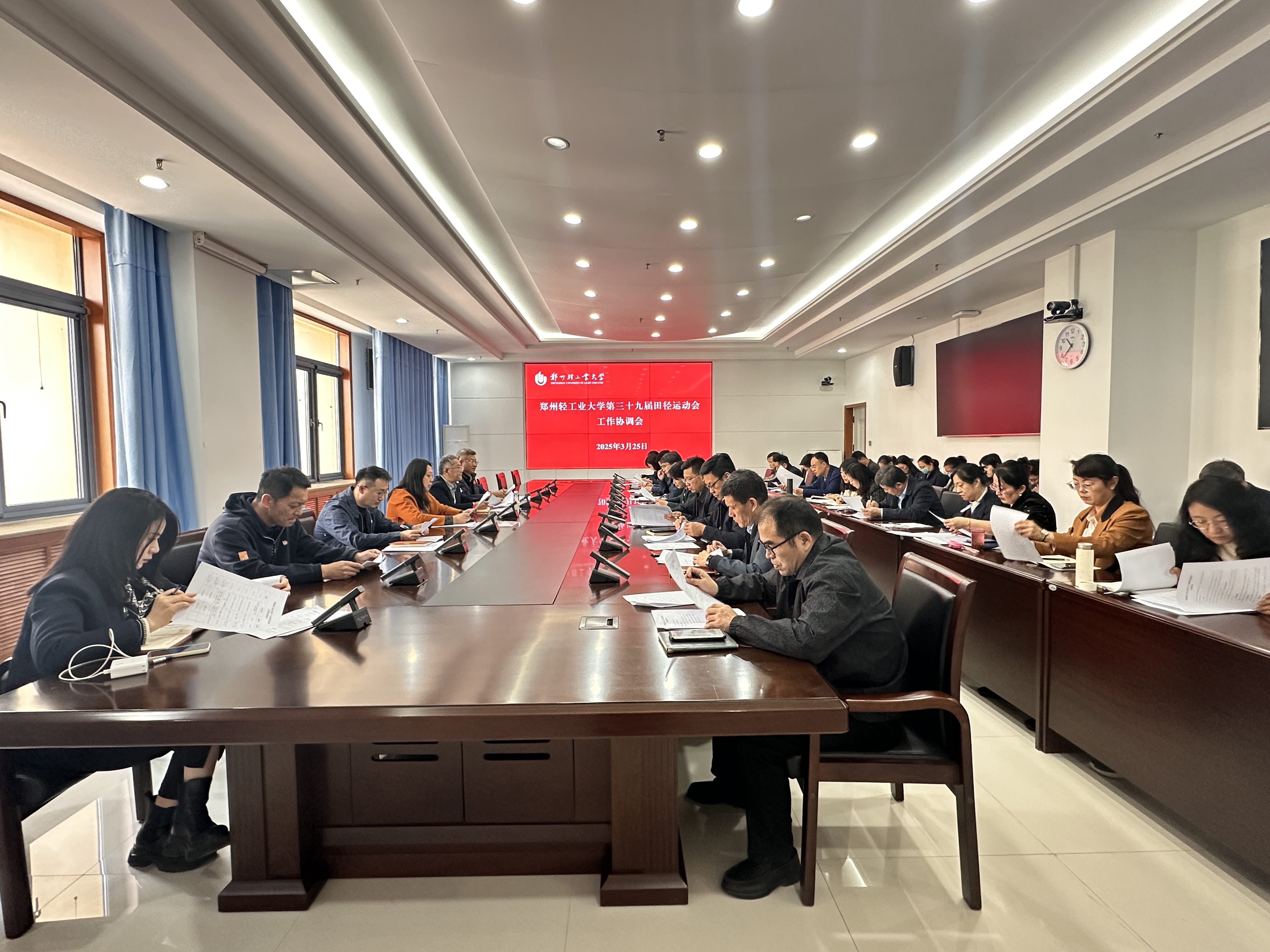 3月25日,学校第三十九届田径运动会工作协调会在科学校区206会议室召开。副校长周立明出席会议,相关职能部门负责人、各学院党委(党总支)副书记参加会议。会议由周立明主持。