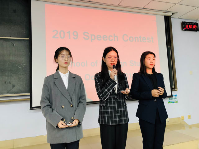 2019年10月25日,外国语学院在教三楼208举行以“No Person is an Island”为主题的英语专业2018级演讲实训汇报演出暨英语演讲大赛。9名选手参加了此次比赛。英语系王铮、周晓红老师担当大赛评委。