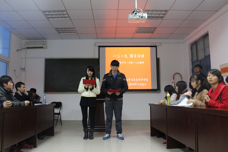 为纪念“一二・九”运动79周年,在广大青年学生中广泛开展爱国主义教育活动,进一步深化增强团员意识主题教育,近日,数学与信息科学学院各专业班级举办纪念“一二・九”运动主题团日活动。