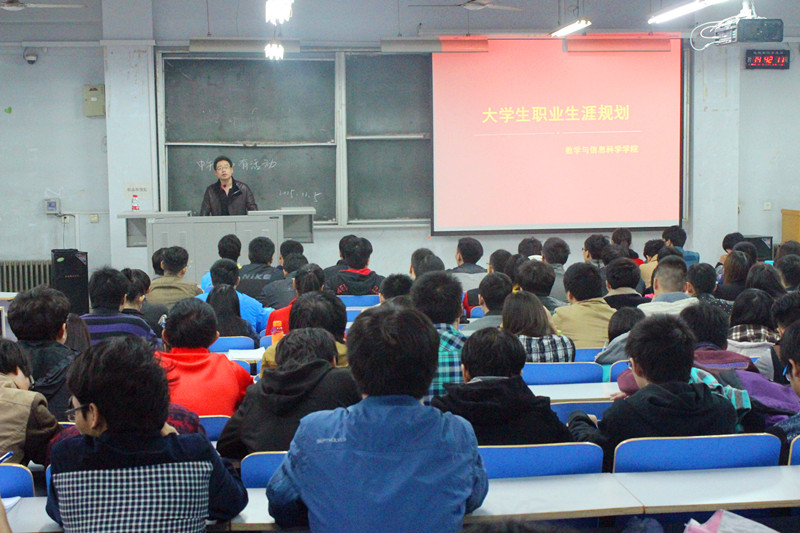 竞争日益激烈的现代社会,大学生们做好职业规划尤为重要。2015年11月5日下午,由数学与信息科学学院主办的大学生职业生涯规划讲座,在东一楼218如期举行。路阳老师以“大学生职业生涯规划”为题对大学生的四年生涯进行了详细解读。