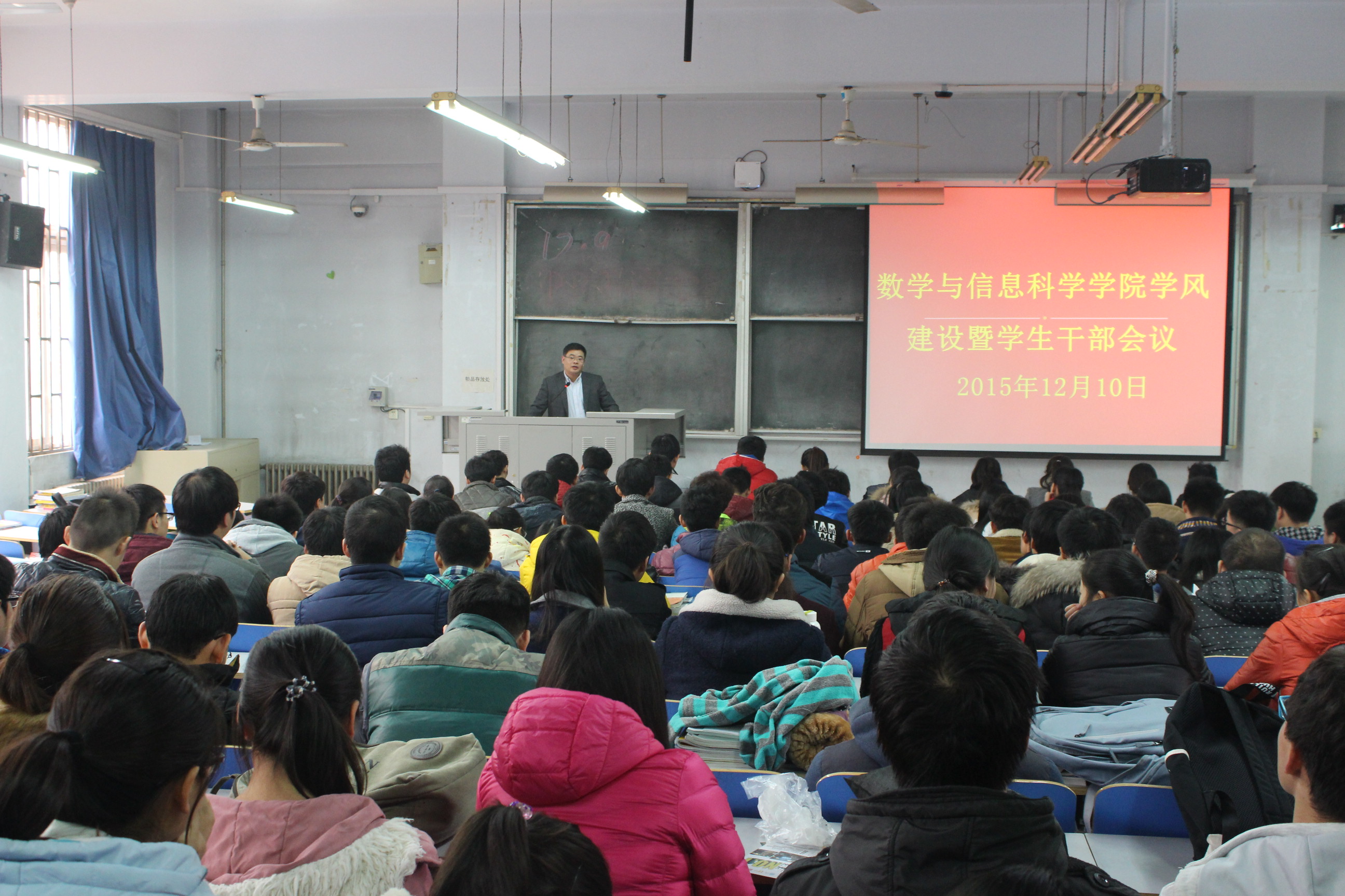 12月10日中午,数学与信息科学学院在东一楼218教室召开了学风建设暨学生干部会议,院党总支副书记张阳、各年级辅导员、全体学生干部和宿舍长参加会议。