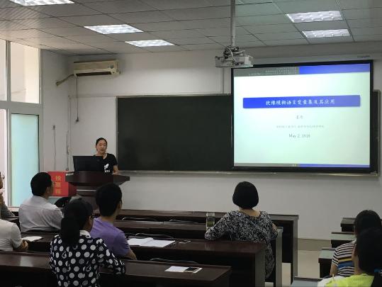 姜乐博士于2016年5月11日下午4:00-5:00,在东一楼216作了“犹豫模糊语言变量下多属性决策分析”的学术报告,数学学院全体博士及部分相关专业教师听取了报告。在报告中,姜乐博士首先详细阐述了犹豫模糊语言变量集的背景意义和应用价值,指出了在多属性决策分析中如何用犹豫模糊语言变量进行评价。其次,介绍了各种犹豫模糊变量的集结及计算方法。最后,得到了模糊偏好关系矩阵,再对矩阵进行一致性检验,进而提供给决策者一个比较合理的决策分析排名。
