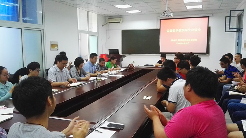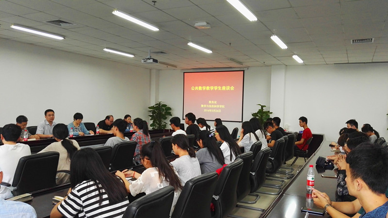 对以工科专业为主的我校来说,公共数学课程在全校人才培养过程中起着重要基础性作用,学校历来非常重视公共数学教学。为加强教学管理,提高教学质量,数学与信息科学学院将把公共数学教学学生座谈会和教师座谈会作为常规教学工作,定期召开。通过座谈会,一方面掌握全校公共数学课程的教与学状况,全面了解存在的问题,为改进教学工作、更好开展教学改革创新提供重要参考;另一方面加强沟通交流,通过学生代表,向同学们传达学校对公共数学课程的重视和数学课程的重要性,动员同学们重视数学的学习,为专业学习和进一步深造打下坚实基础。