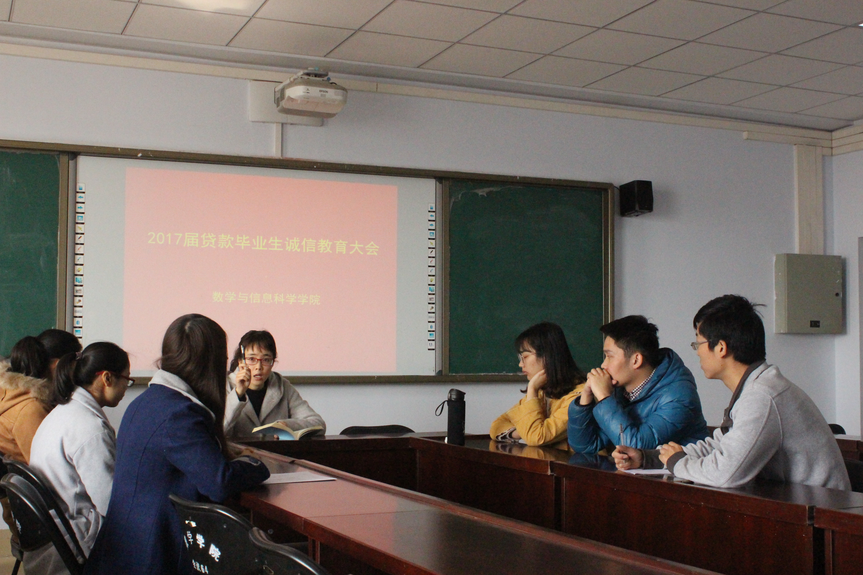 为进一步加深广大2017届贷款毕业生对国家助学贷款政策的认识,强化诚信还款意识,3月7日上午10:00,数学与信息科学学院在教三楼1000召开“2017届贷款毕业生诚信教育大会”。