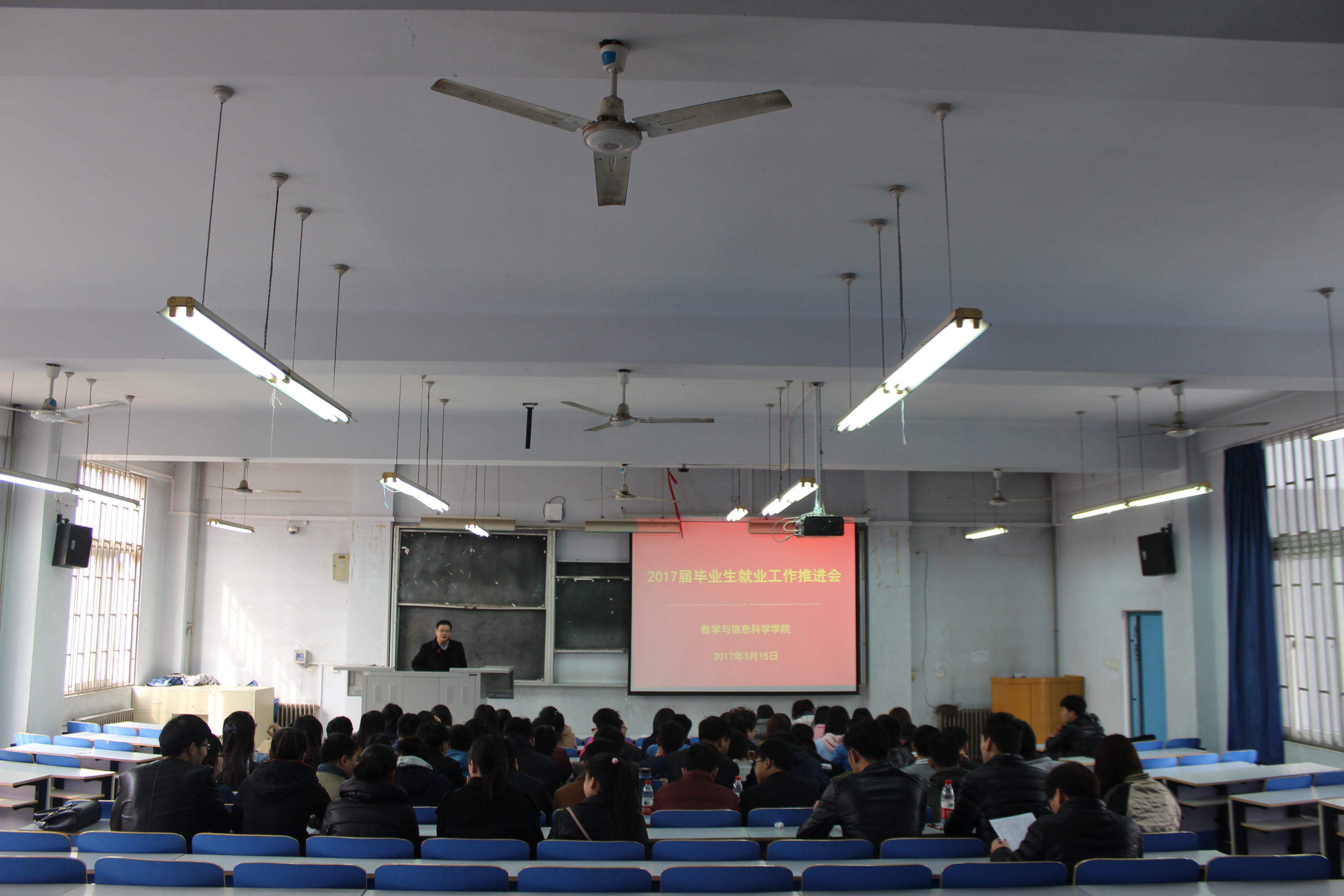 为了帮助2017届毕业生早日选择自己的理想职业岗位,3月15日上午10:00,数学与信息科学学院在东一楼218召开2017届毕业生就业工作推会,学院党总支副书记、就业负责人及2017届全体毕业生参加了此次会议。
