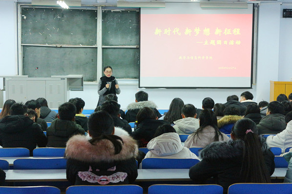 为引导团员青年们坚定理想信念,志存高远,脚踏实地,不忘初心,砥砺前行,数学与信息科学学院于12月27日下午在东一楼218召开了以“新时代 新梦想 新征程”为主题的团日活动,学院分团委负责人张智勤老师、2017级、2018级主要学生干部50余人参加了本次团日活动。