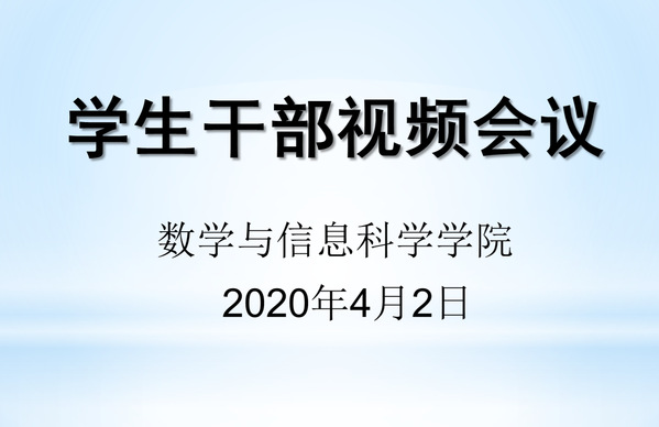 在举国上下凝心聚力、众志成城抗击新冠肺炎疫情之际,为增强广大学子共克时艰、战胜疫情的信心和决心,确保新学期各项工作顺利开展,做好疫情防控期间学生管理工作,4月2日下午,数学与信息科学学院以线上会议形式召开网络工作视频会议,学院党委副书记王燕翔、分团委书记张智勤、学工办副主任韩笑及所有学生干部参加了会议。
