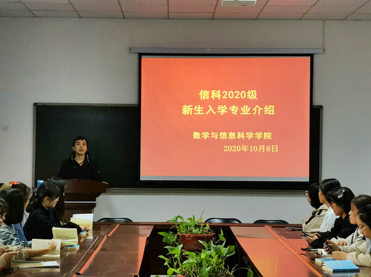 为使2020级新生全面了解所学专业,熟知各专业就业前景,更好地规划自己的学业生涯,推进学院在发挥人才培养方面的优势,数学与信息科学学院于10月7日下午和10月8日上午分别在东一楼218和310召开2020级新生专业介绍会,学院各专业教研室教师、教务老师和全体新生参加大会。