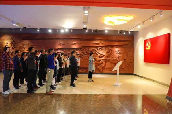 在焦裕禄纪念馆,党员们面对鲜红的党旗,举起右手,重温入党誓词,庄严宣誓。党员们全面了解了焦裕禄全心全意为人民服务的伟大一生,真切触摸焦裕禄同志“亲民爱民、艰苦奋斗、科学求实、迎难而上、无私奉献”的精神。焦桐下,党员们聆听着“焦桐的故事”,感受焦裕禄最朴实的人民公仆情怀。随后,党员们来到焦裕禄事迹展厅,一张张历史图片,一件件生活用品,一个个感人的故事,生动地展示了焦裕禄同志全心全意为人民服务、鞠躬尽瘁死而后已的光辉一生。在焦裕禄获得的奖状前、在他穿过的破旧的衬衫前,大家认真听讲、静静观看、默默思考,感悟亲民爱民、艰苦奋斗、科学求实、迎难而上、无私奉献的焦裕禄精神,学习焦裕禄同志为党的事业鞠躬尽瘁、对党忠诚的政治品格,为民尽责的公仆情怀,勤勉敬业的优良作风。