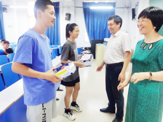 713日上午,数学与信息科学学院党委书记郭晓丽、院长黄守佳、副书记王燕翔、年级辅导员及班主任赴东一楼218考研自习室看望慰问留校考研学生,并为学生赠送清凉解暑水果。