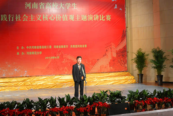 此次演讲比赛由省高工委、省教育厅、团省委联合主办,河南师范大学承办。来自省内74所高校的140名大学生参加比赛,共决出一等奖8名、二等奖12名、三等奖18名、优秀奖若干名,10所高校获优秀组织奖。闭幕式上,省委宣传部副巡视员杜瑞明、省委高校工委专职委员贾修国、团省委副书记王艺、省委宣传部宣传处处长孙保群、团省委学校部部长王宏琳等领导为获奖选手颁发获奖证书。