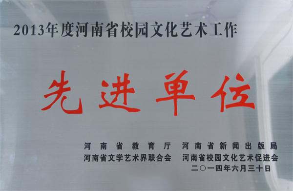 日前,我校附属学校喜获“河南省校园文化艺术工作先进单位”称号,该荣誉是河南省校园文化艺术工作的年度最高荣誉,由河南省教育厅、河南新闻出版局、河南省文学艺术界联合会、河南校园文学艺术促进会联合组织评选。参评2013年度该奖项的学校全省有6627所,其中261所学校荣获该项荣誉。