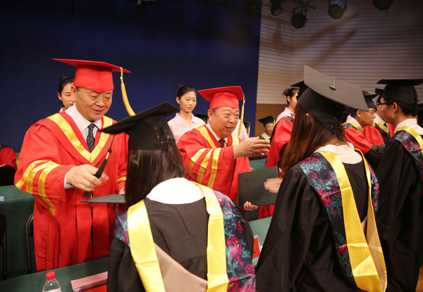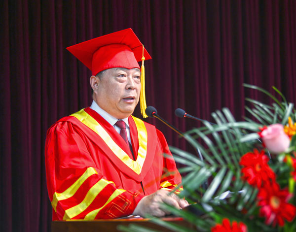 赵校长表示,即将离别之际,我代表所有师长将满腔的眷恋和希冀化作四句话送给你们:第一,希望你们志存高远、敢于担当。今天的你们比当年的我们更有思想,更有才华,更有朝气。希望你们满怀信心、努力奋斗,成为一个勇担重任的人,为国家的繁荣昌盛,为中华民族伟大复兴,贡献自己的一份力量。第二,希望你们崇尚真理、做人为先。始终保持诚实做人、踏实做事、追求真理的人生态度,摒弃浮躁、虚假、急功近利和随波逐流等不良倾向,严谨务实、上下求索。第三,希望你们终身学习、勇于创新。永远保持学习和创新的热情,不断探求新知,发现新事物,探索新事物,引领新事物,树立梦想从学习开始、事业靠创新成就的观念,让勤奋学习成为青春远航的原动力,让勇于创新成为青春搏击的正能量。第四,希望你们至爱宽容、豁达自律。以豁达的心态直面人生的高潮与低谷,以宽容的性情对待人生的失落与坎坷,积极自信地去成就有意义、有价值、有创造的未来。