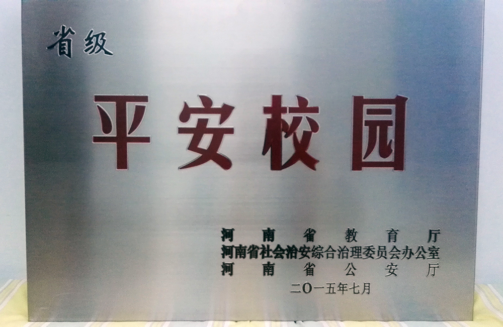 近日,河南省教育厅、河南省社会治安综合治理委员会办公室、河南省公安厅联合下发《关于命名省级“平安校园”的通报》(教办[2015]437号),我校获得了省级“平安校园”荣誉称号。