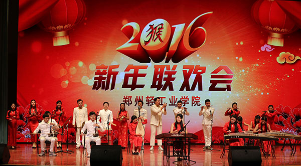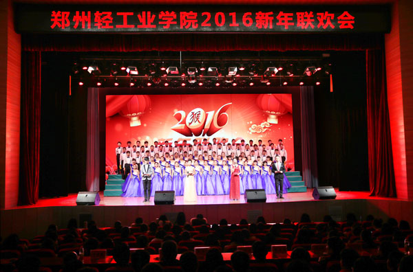 12月31日下午,郑州轻工业学院2016 新年联欢会在东风校区大礼堂精彩上演。学校领导石恒真、赵卫东、张胜利、窦效民、尚宝平、安士伟、毛多斌、王新杰、李世瑛参加联欢会,与现场千余名师生员工一同观看演出、迎接新年。