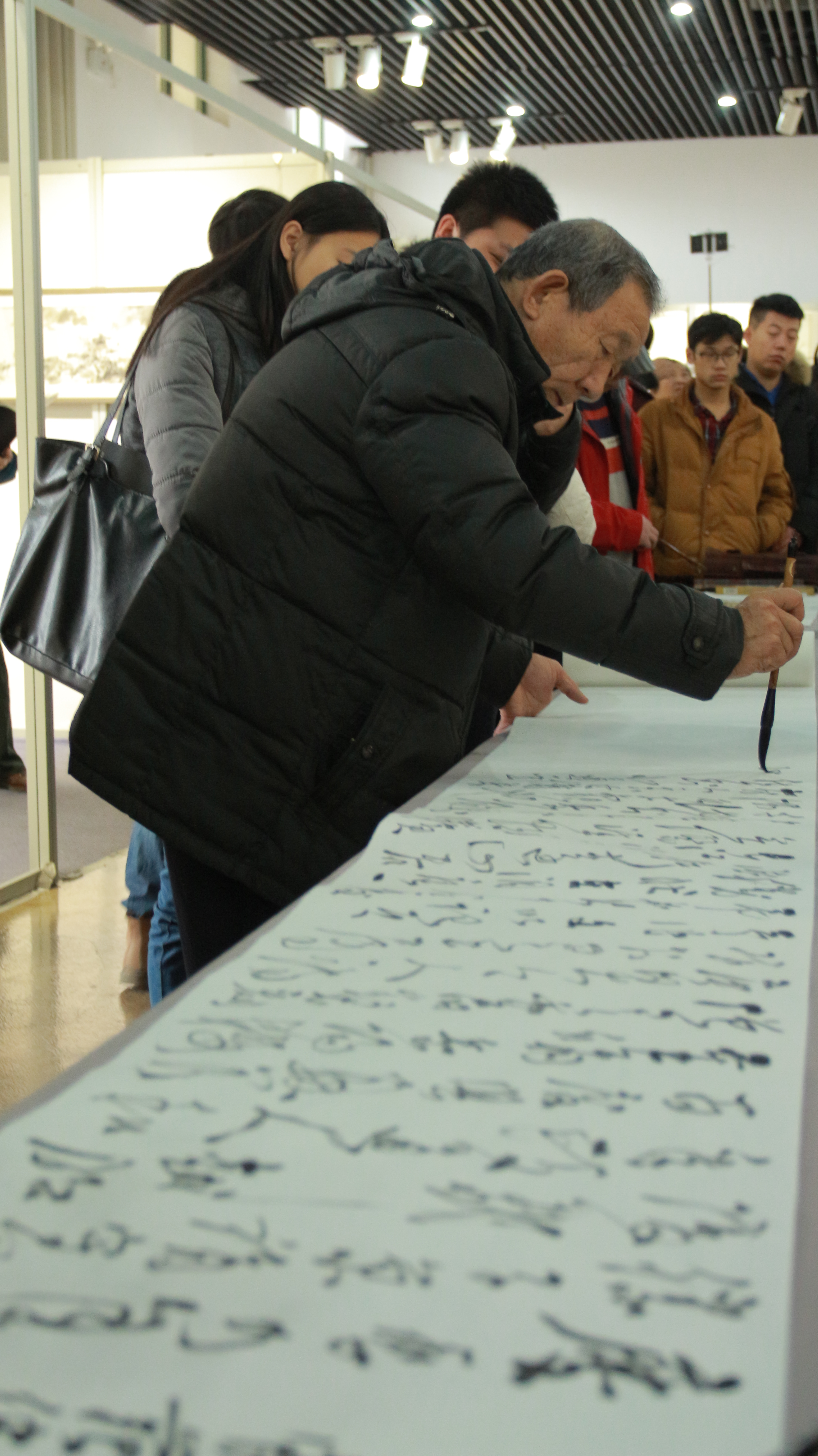 开幕式首先由河南黄河书画院理事长王克诚先生发表致辞,表达了对本次画展主办方艺术设计学院和两位画家的感谢。随后由艺术设计学院副院长魏华致辞并宣布本次画展开幕。开幕式上,为感谢艺术设计学院精心策划本次画展以及两院之间的首次合作,王克诚先生代表两位画家,特向艺术设计学院赠送了两幅长篇山水画作。开幕式之后,韩东、崔旭潮两位画家以及黄河书画院翟清河等多位书法家现场创作,师生共同交流学习。