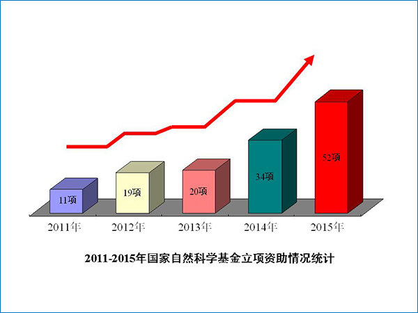 盘点2015年度国家自然科学基金评审情况,我校共获立项资助项目52项,其中面上项目9项、青年科学基金34项,NSFC-河南人才培养联合基金6项,应急管理项目3项。从项目数量来看,我校位居全国高校第171位、河南省高校第6位,均创历史新高。从增长率来看,我校与全国其他10余所高校增幅显著,达到了50%以上,增长势头领跑全省高校。