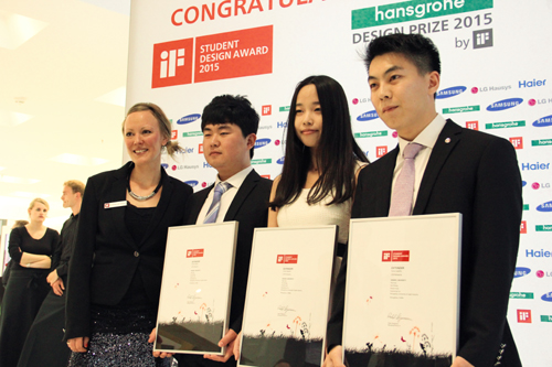 2015年6月,我校2011级传媒艺术设计专业学生郭涛、张蕙和崔冠松受邀参加了在德国汉堡举行的第62届德国iF概念设计大赛颁奖典礼。iF负责人、汉斯格雅集团和海尔集团代表以及来自全球各地100多个获奖团队的老师、学生代表参加了颁奖典礼。全球前30名获奖团队的代表在现场获颁证书,我校三位同学凭借作品《EXTENDER内嵌式多功能插座》获此殊荣,登台领奖。