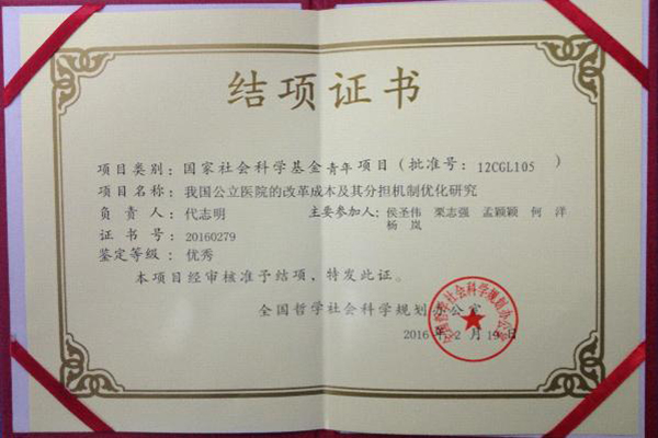 日前,我校政法学院代志明博士主持的国家社科基金项目《我国公立医院的改革成本及其分担机制优化研究》已经顺利通过结项鉴定,等级为“优秀”。根据全国哲学社会科学规划办公室2016年2月国家社科基金项目成果验收情况报告显示:在2月份结项的230项成果中,被鉴定为“优秀”等级的项目只有13项(河南省仅此1项),占结项总数的5.65%。