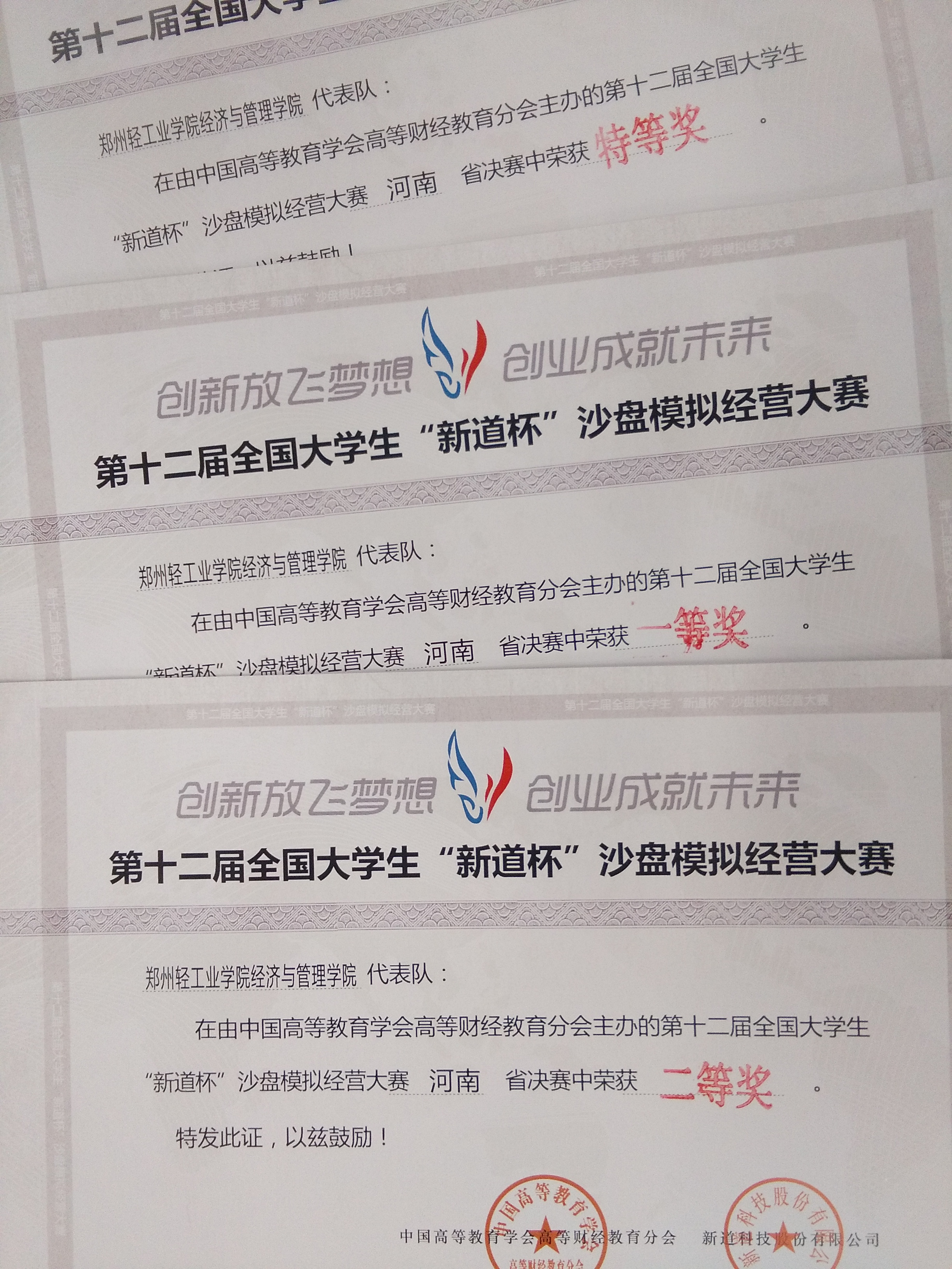 6月5日,由中国高等教育学会高等财经教育分会主办、新道科技股份有限公司承办、河南经贸职业学院协办的第十二届全国大学生“新道杯”创业沙盘模拟经营大赛河南决赛圆满落下帷幕。我校经济与管理学院首次派出队伍参加了此次比赛,派出的三支代表队分别获得本科组特等奖、一等奖、二等奖的好成绩。