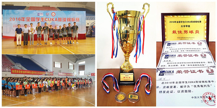 暑假期间,我校荷球代表队参加2016年全国学生CUKA荷球锦标赛并取得了高校甲组第三名的好成绩。同时,马丁老师获得“优秀裁判员”称号,李天浩同学获得“最佳男球员”称号,张宏杰、朱诗琪同学被授予“体育道德风尚奖”,为学校争得了荣誉。