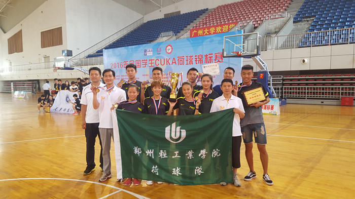 | 暑假期间,我校荷球代表队参加2016年全国学生CUKA荷球锦标赛并取得了高校甲组第三名的好成绩。同时,马丁老师获得“优秀裁判员”称号,李天浩同学获得“最佳男球员”称号,张宏杰、朱诗琪同学被授予“体育道德风尚奖”,为学校争得了荣誉。 本次比赛由教育部中国大学生体育协会主办,广东省教育厅体卫艺处、国家体育总局社体中心协办,广州大学承办。比赛设高校甲组(单区比赛)、乙组(全场比赛)、中学甲组三个组别,比赛分小组赛和决赛两个阶段。共有来自全国各地的17支代表队参赛。 经过激烈角逐,长安大学、广州大学、郑州轻工业学院分别获得高校甲组冠、亚、季军,天津科技大学、郑州大学、西南大学分别获得高校乙组冠、亚、季军。 为了备战本次比赛,体育学院高度重视,组织学生积极投入赛前训练,暑假期间更是顶烈阳、冒酷暑进行了集训,达到了较高的竞技水平。荷球队教练员运动员发扬爱校荣校的集体主义精神,赛前科学系统训练,赛中积极努力拼搏,展现了轻院师生良好的体育精神和运动风采。