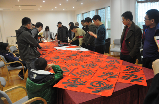 书法是中国及深受中国文化影响过的周边国家和地区特有的一种文字美的艺术表现形式,分享会后,刘雨石现场泼墨,一幅幅风格不同的“福”字为大家带来新春的祝福,他的书法大气自然,挥洒自如,让我们加深了对传统文化的认同。