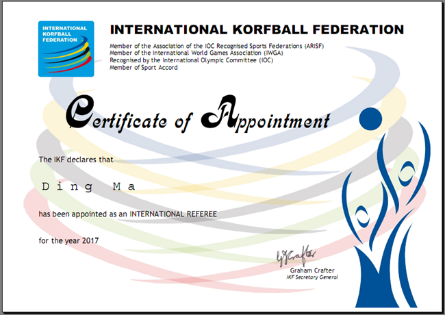2017年2月11日,国际荷球联合会发来委任书,委任我校马丁老师为2017年国际级裁判员。2015、2016年,马丁老师作为荷球国际裁判员分别执法过亚洲荷球锦标赛、亚洲U23荷球锦标赛、亚洲U19荷球锦标赛。 目前,世界上荷球国际级裁判员为46人,其中中国1人,中国香港3人,中国台湾2人。