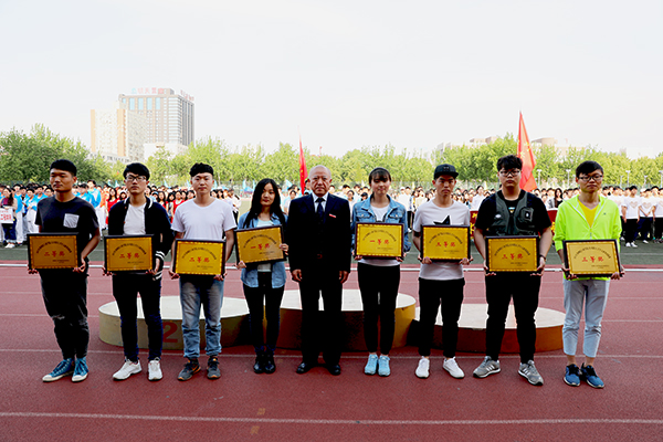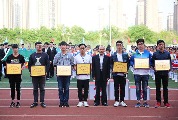 闭幕式上,校领导为运动会各项比赛及阳光体育活动获奖单位颁奖并表示祝贺。