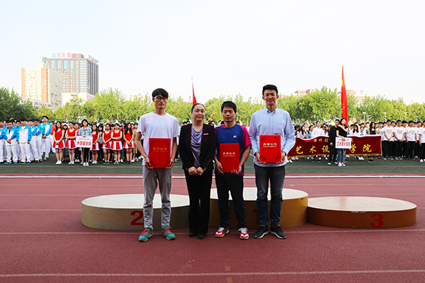 闭幕式上,校领导为运动会各项比赛及阳光体育活动获奖单位颁奖并表示祝贺。