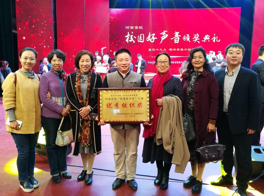 10月12-13日,由河南省高校工委、河南省教育厅主办,周口师范学院承办的河南高校“喜迎党的十九大,唱响青春中国梦——‘校园好声音’”大赛在周口师范学院落下帷幕,全省有20所高校参加了比赛。我校参赛师生表现突出、成绩优异,学校获得“优秀组织奖”。 学校艺术教育中心和校团委选派由我校“校园好声音”比赛获奖选手及学校“歌唱协会”教师代表共同组成的“轻工业学院师生团”赴周口师院参加了比赛。我校这次参赛的曲目类型涵盖面广,演唱形式多样,参赛节目由软件学院王晨同学演唱的流行曲目《存在》、王珑羽同学演唱的花腔女高音歌曲《玛依拉变奏曲》、艺术设计学院章玉同学演唱的爱国爱党歌曲《清晰的记忆》、能源与动力工程学院的陈辉同学演唱的爱国歌曲《我爱你,中华》及我校何春黎、李宝珍、李霞、李燕华、谢欢五位教师演唱的小合唱《灯碗碗开花在窗台》组成。 我校师生在比赛中,精神饱满、斗志昂扬,高亢的学生独唱《存在》、《玛依拉变奏曲》;抒情的《我爱你,中华》、《清晰的记忆》;幽默诙谐的教师小合唱《灯碗碗开花在窗台》,参赛节目精彩纷呈、次第绽放。我校师生专业的演唱水平折服了评委和观众,比赛现场掌声不断,叫好连连。尤其是我校教师小合唱,成员平均年龄55岁,演唱表演风趣幽默,在众多的参赛生选手中成为五朵亮丽的鲜花,绽放舞台。 成绩取得与师生的辛勤付出是分不开的,备赛期间艺术教育中心杨荆州、白彬彬和刘玎玎等老师,放弃休息时间为老师和学生进行辅导排练。参赛期间,校团委、艺术教育中心安排专人到现场为参赛师生做好服务与指导。参赛过程中,我校师生奋力拼搏、团结协作,充分展示了我校师生昂扬向上、奋发进取、团结拼搏的精神风貌。比赛充分展现了我校师生整体音乐素质和高雅的艺术修养,体现了我校校园文化生活水准和浓郁的校园文化艺术氛围。 |