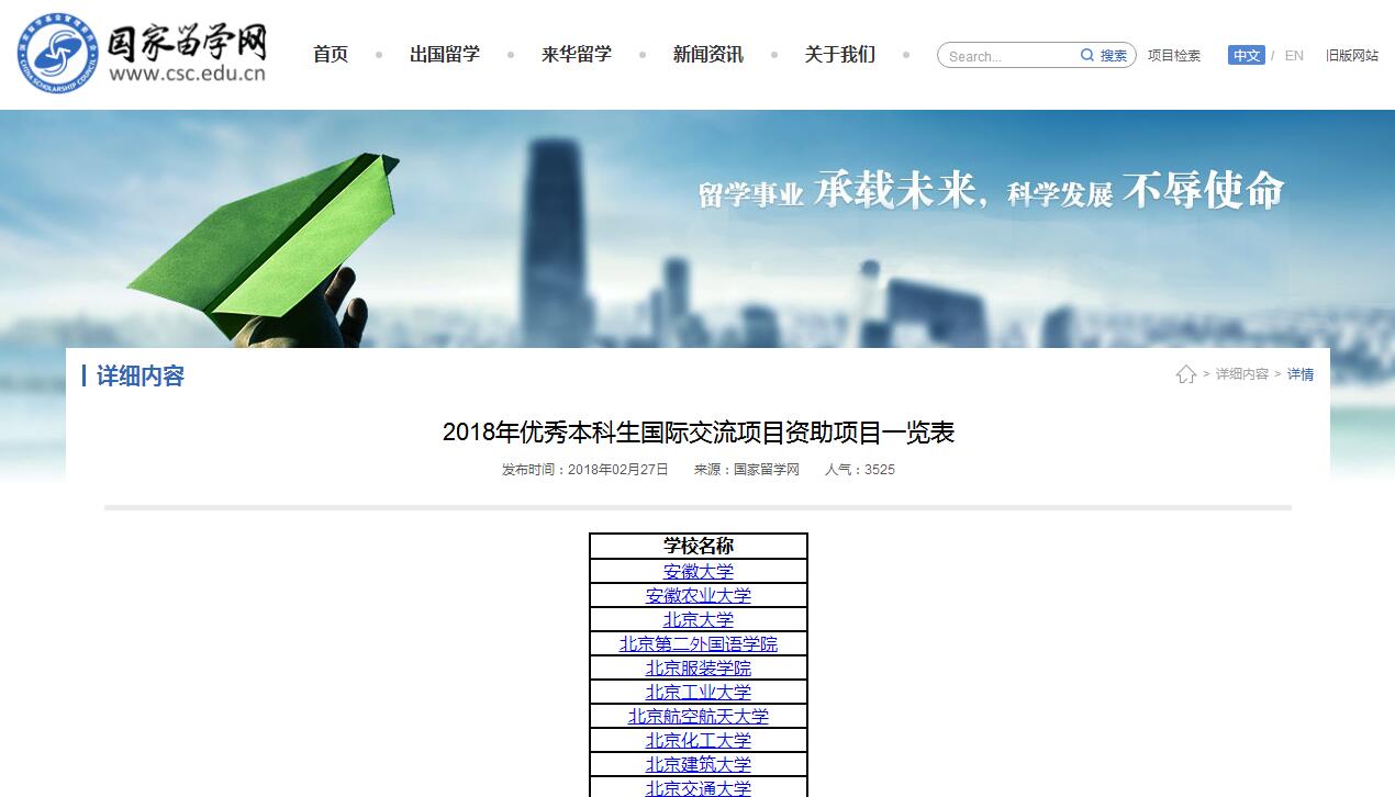 近日,国家留学基金委公布2018年优秀本科生国际交流项目(以下简称为“优本项目”)评审结果,我校申报的郑州轻工业学院与意大利卡梅里诺大学、美国奥克兰大学、英国皇家农业大学、爱尔兰沃特福德理工学院的4项学生国际交流项目全部榜上有名,获得公派名额33个,连续两年荣获河南省高校第一。 据悉,2018年国家留学基金委“优本项目”选派名额为4500名(比2017年减少500名),河南省郑州大学等5所高校共获得72个公派名额。此次是我校继2017年后再次获批国家留学基金委“优本项目”。 国家留学基金委设立的“优本项目”,旨在充分发挥国家公派出国留学的政策导向和带头作用,进一步推动国内高水平大学与世界知名大学及机构合作,促进多元文化交流,提高学生创新意识、实践能力与国际竞争力,满足国家急需专业、学科领域高素质国际化人才培养需求。该项目以各高校与海外知名高校签署的校际学生(本科生)交流协议为依托,资助优秀本科生以交换、插班形式赴国外合作院校进行课程学习,或赴国际组织、实验室、企业等进行科研实习,时限为3个月至12个月。我校4个项目的时限,除英国皇家农业大学是6个月以外,其他三个项目均为12个月。 两年来,国际处利用国家留学基金委“优本项目”这个国家级平台,积极做好项目设计、申报、宣传、选拔、跟踪管理及发展规划工作,2017年项目执行情况及学生管理得到国家留学基金委的肯定。“优本项目”提升了我校学生国际交流的水平,也为我校本科学生的国际交流开辟了更多的渠道。