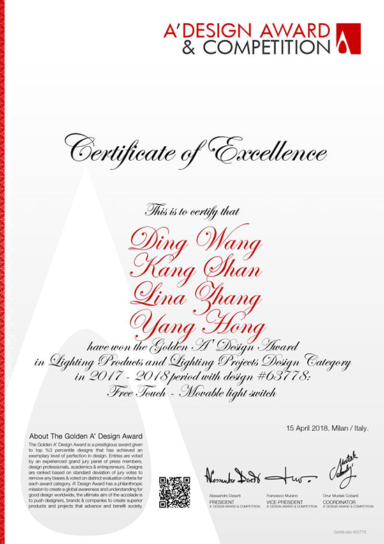 A’ DesignAward设计奖是全球领先的国际年度设计比赛。该项赛事每年举办一次,评审团对来自世界各地,赛事汇聚了一大批国际上能够体现最卓越设计、技术和创意的产品、项目和服务,其优胜者被全球认可。