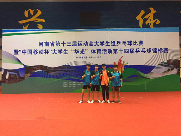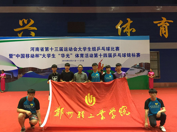 5月21日—5月27日,河南省第十三届运动会大学生组乒乓球赛暨第14届“华光”乒乓球锦标赛在安阳工学院举行。我校共派出甲组和乙组两队参加本次比赛。 比赛中同学们顽强拼搏,最终取得团体赛乙组第八名,双打比赛乙组第五名的好成绩。