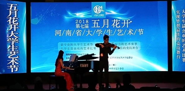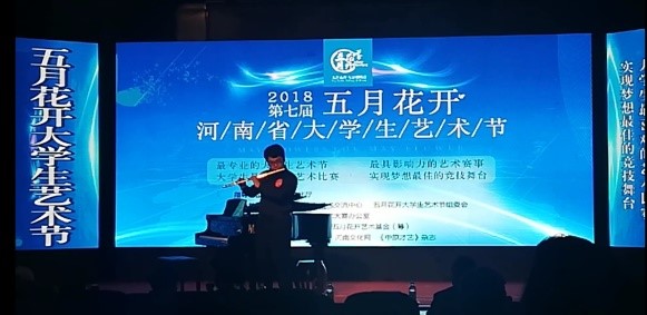 2018年5月20日,河南省第七届五月花开大学生艺术节器乐大赛在郑州中原区青少年活动中心举行。来自河南省各大高校的专业和非专业的器乐学子以乐会友,展现了河南高校学子的风采。河南省第七届五月花开器乐大赛是在河南省文化厅指导下,由河南省东方文化艺术交流中心和五月花开大学生艺术节组委会承办,是一场公平公正公开的激烈角逐。 我校在大学生艺术团器乐团和艺术教育中心技能技巧课上选拔4名优秀学生参加了此次比赛,我校学生虽然来自非音乐专业,但也取得了非常优异的成绩,全部获奖,各有2名学生分获业余组一等奖和二等奖。在业余组比赛中,电气信息工程学院轨道交通16级曹梓安同学演奏的宋国生二胡名曲《豫乡行》获得一等奖、国际教育学院IEC电气工程及其自动化专业16级何昊同学演奏的詹姆斯·高威尔长笛名曲《瑞士牧羊人》获得一等奖;数学与信息科学学院信息与计算科学专业16级张世奇同学用萨克斯演奏的玛奎纳《西班牙斗牛士进行曲》获得二等奖、电气信息工程学院自动化专业16级权政同学演奏的萨拉萨蒂小提琴曲《哈巴涅拉舞曲》获得二等奖。艺术教育中心张艺帆老师获得了优秀指导教师奖。 艺术教育中心为了满足学生艺术素养提升的需求,开设了多种艺术类选修课和艺术类技能技巧提高课。大学生艺术团也为学生艺术实践提供了多种便利条件和机会。中心老师牺牲休息时间,积极辅导和指导有兴趣的学生进行技能技巧训练和参加比赛,在多种非专业组别的艺术类比赛中都取得了不菲的成绩。希望老师和同学们继续努力,再创佳绩。