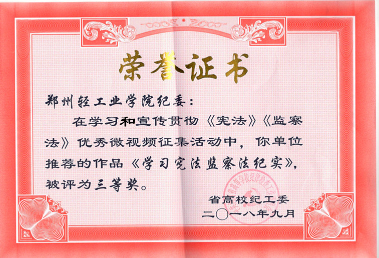 培训中,全体纪检监察干部系统听取了纪检监察相关政策、法规及业务理论方面的专家辅导讲座,并进行了座谈交流。期间,省高校纪工委以闭卷考试的形式对全省35所省管本科院校参训的208名纪检监察干部进行了“两法”知识测试。我校以团体总分第一名的成绩受到表彰,并被评为优秀单位。孟祥凤同志代表学校参加了“两法”学习交流心得评比,并受到表彰。此外,在学习宣传贯彻“两法”优秀微视频征集活动中,我校推荐作品《学习宪法监察法纪实》被评为三等奖。