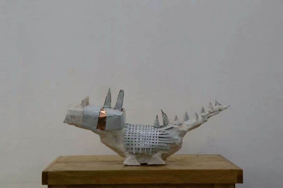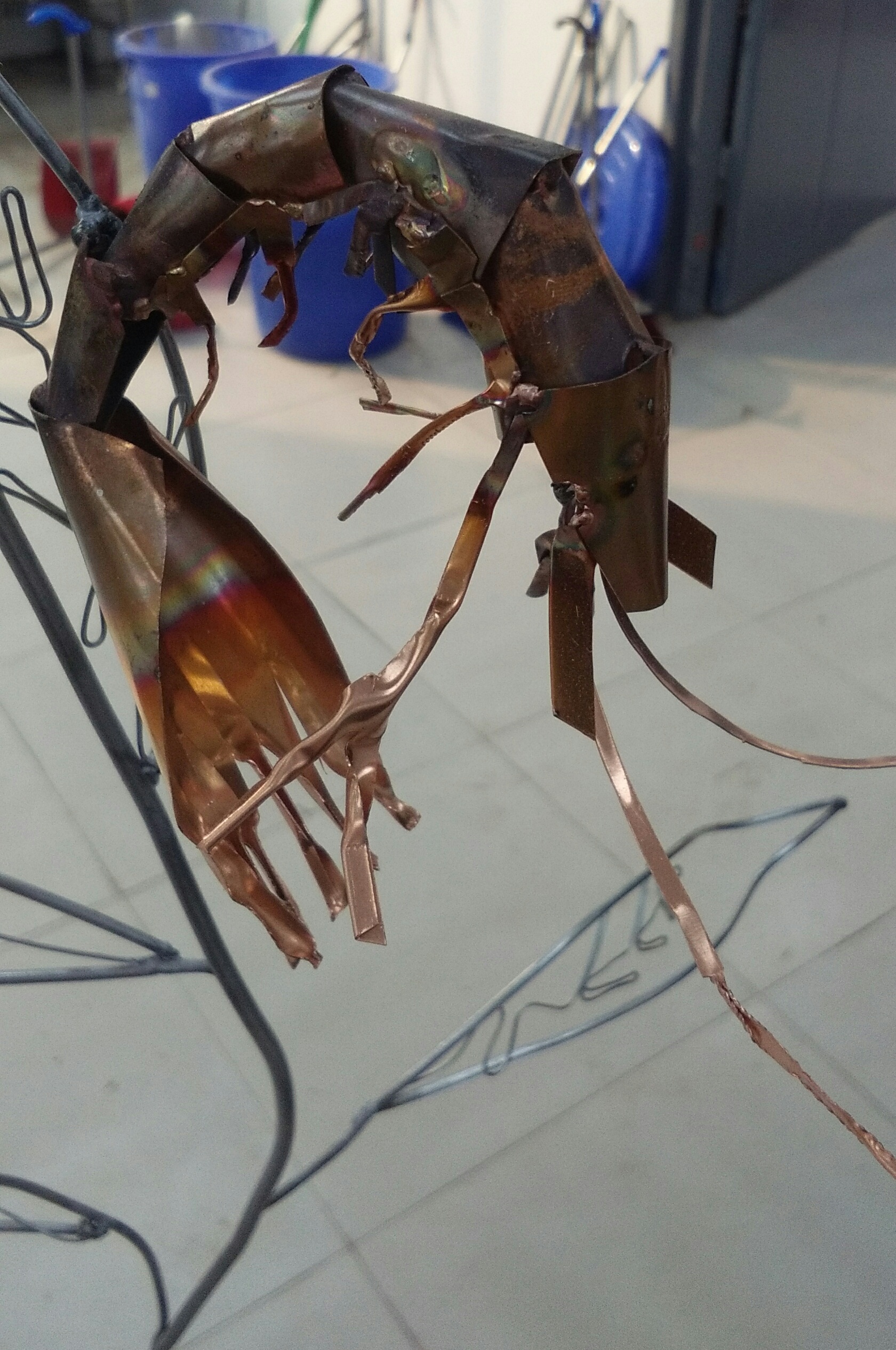 这件作品主要是想以不同的形式来表达对经典的致敬,作品前期思考并没有花费多少时间,主要是后期做的过程比较困难,铜片铜条铁条之间的焊接掌握的还不够好造成了精致度不够,对于这件作品的形式和材料的结合感觉还可以。这是雕塑创作的一个开始,希望再接再厉。志当存高远。