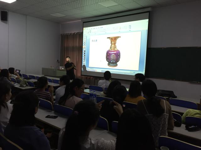 卢老师以《钧瓷与钧瓷企业的历史与未来》为主题,以艺术品鉴赏和艺术品设计的文化为依托,围绕艺术品营销和文化产业管理这条主线,就禹州的历史、钧瓷的历史、禹州钧瓷产业以及钧瓷企业的态势和面临的困境进行了剖析,报告高屋建瓴,为文科专业同学打开了了解钧瓷的新视野,极大地提高了同学们的艺术文化修养和对艺术品市场的认知,对同学们下阶段的钧瓷企业实践活动具有重要指导作用。
